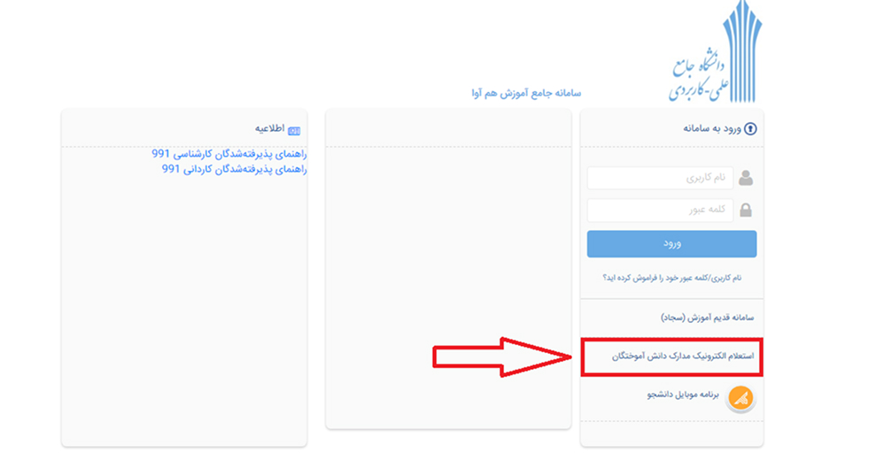 مراکز علمی کاربردی،آموزش عالی،سازمان ها و شرکت ها با مراجعه به سامانه آموزشی دانشگاه جامع علمی کاربردی (هم آوا) به آدرس https://edu.uast.ac.ir از قسمت “استعلام الکترونیک مدارک دانش آموختگان” میتوانند با پرکردن فیلد های اجباری که به صورت نمونه نمایش داده شده است نسبت به صدور تاییدیه تحصیلی اقدام نمایند.