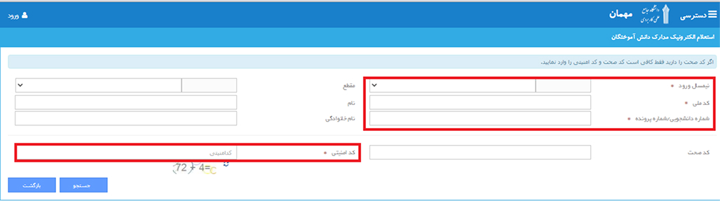 ۴. استعلام سوابق تحصیلی بر روی پایگاه اینترنتی وزارت علوم، تحقیقات و فناوری