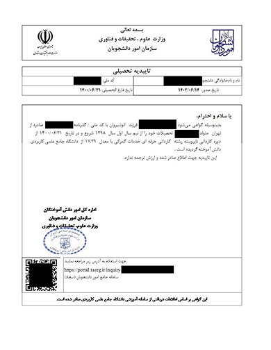 ۳. صدور تاییدیه تحصیلی در سامانه استعلام وزارت علوم برای مدارک فاقد کد صحت و QRکد